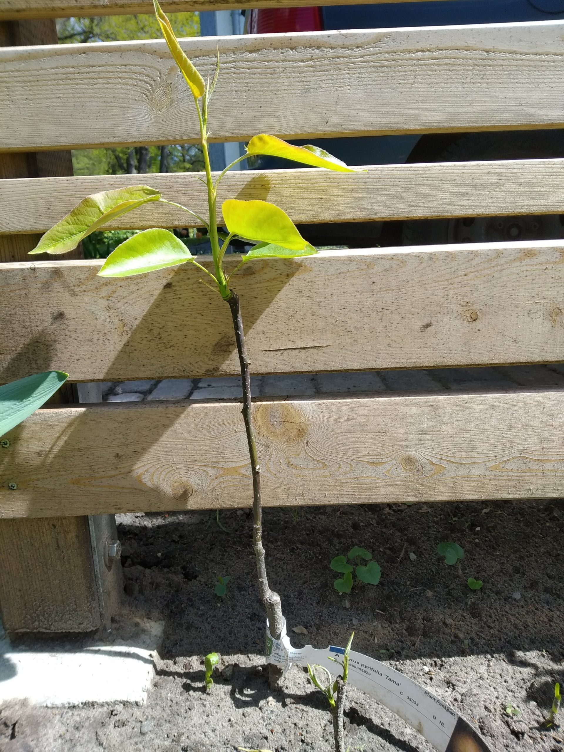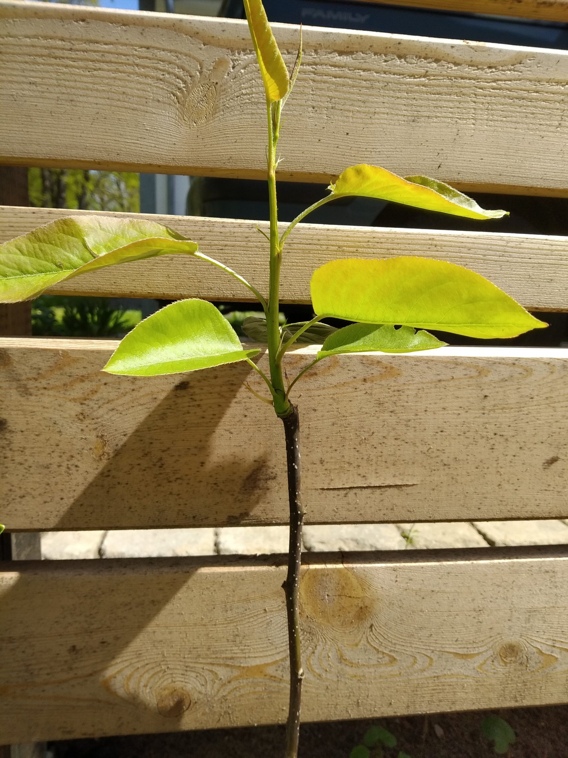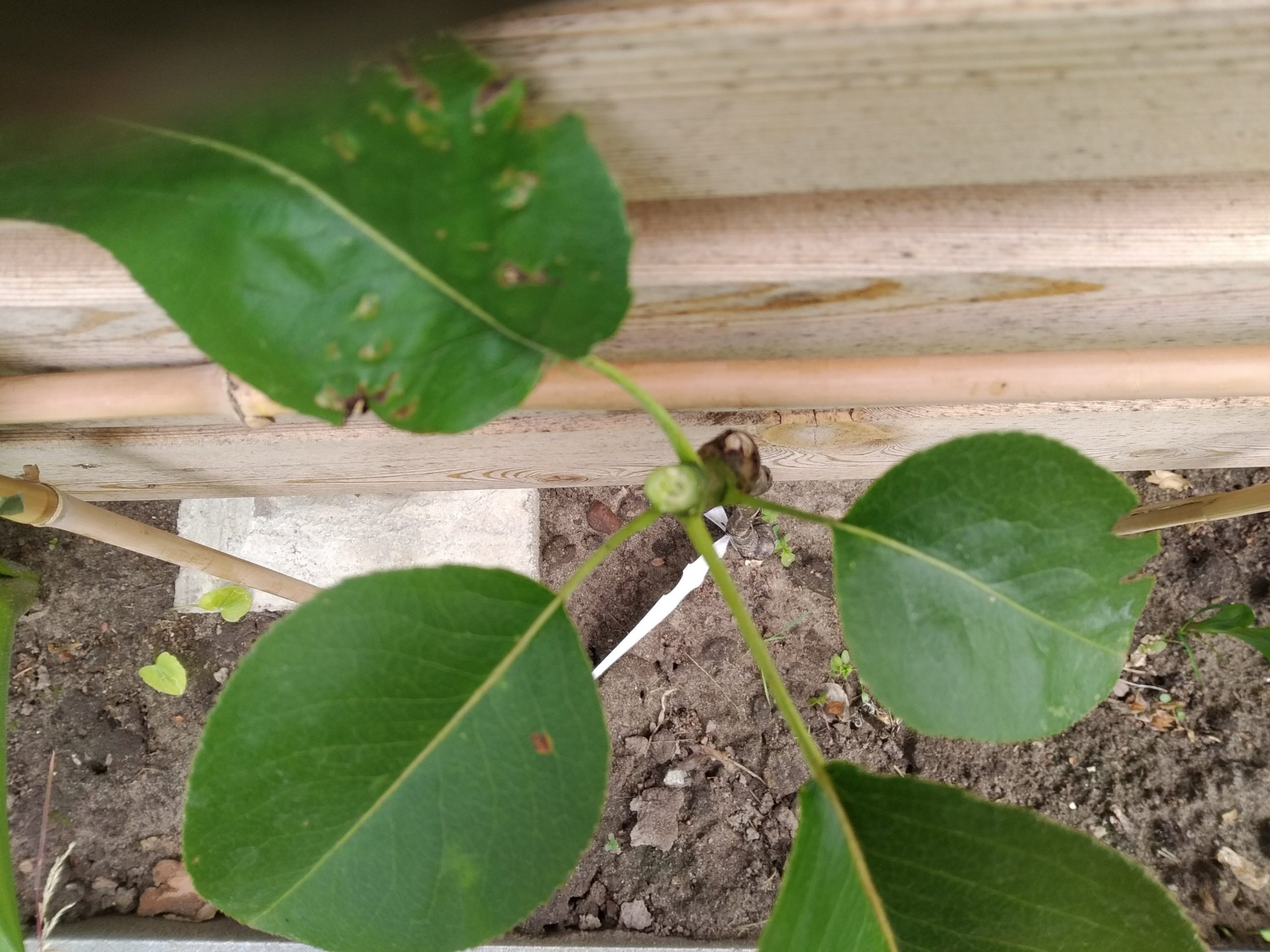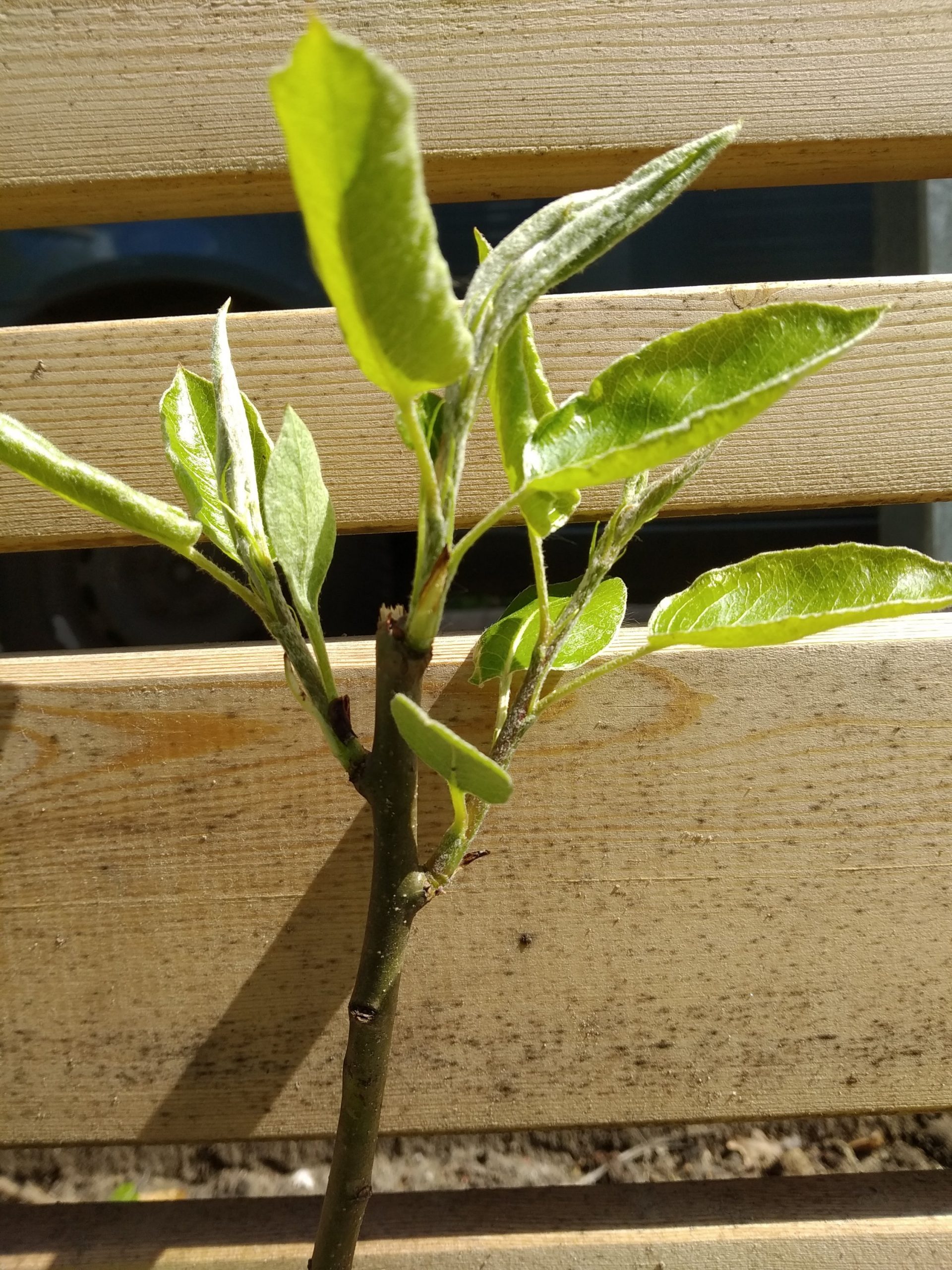 Die Birnen habe ich im Februar auf zwei Augen geschnitten. Bei einigen, wo es sich anbot, habe ich ein Ersatzauge stehen lassen. Aber am Ende sollen sie zu einem einfachen U-Spalier herangezogen werden. Dafür habe ich eine schwachwachsende Unterlage ausgewählt: Quitte A