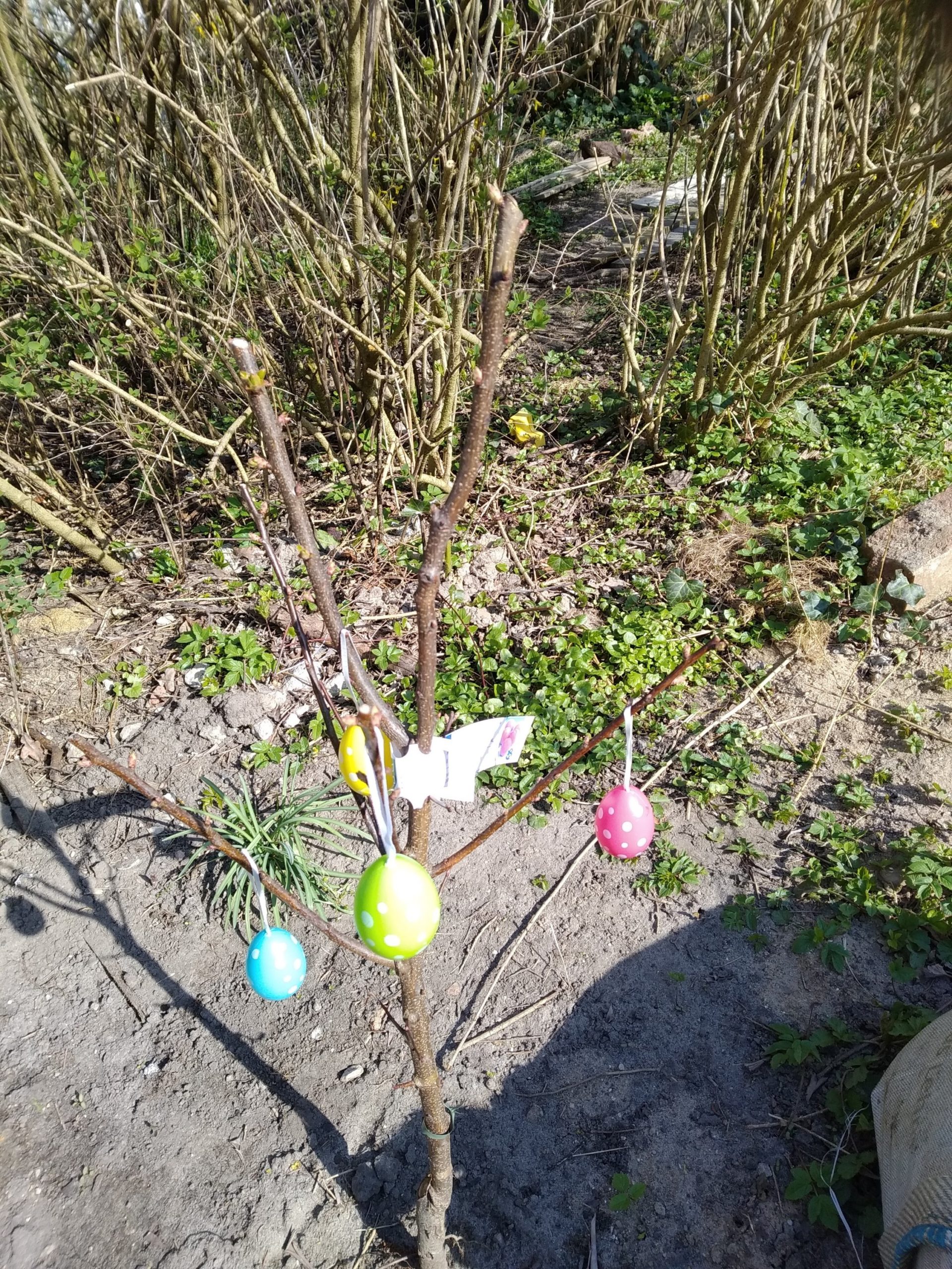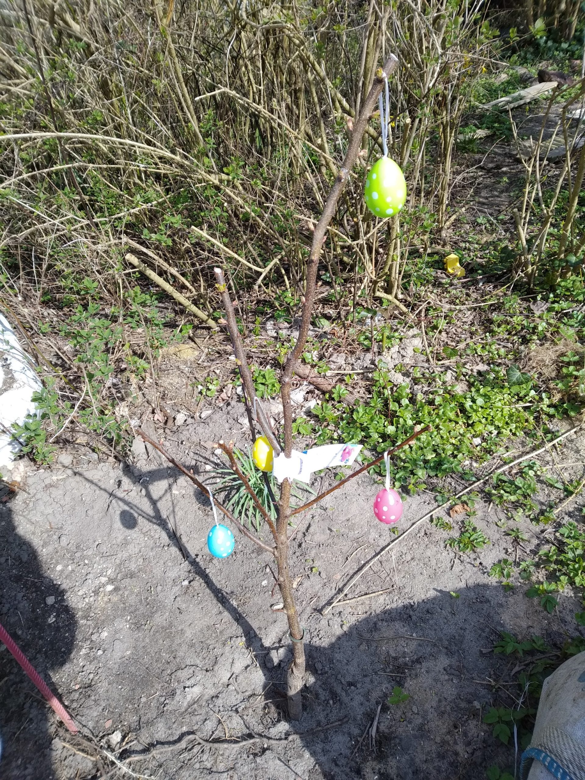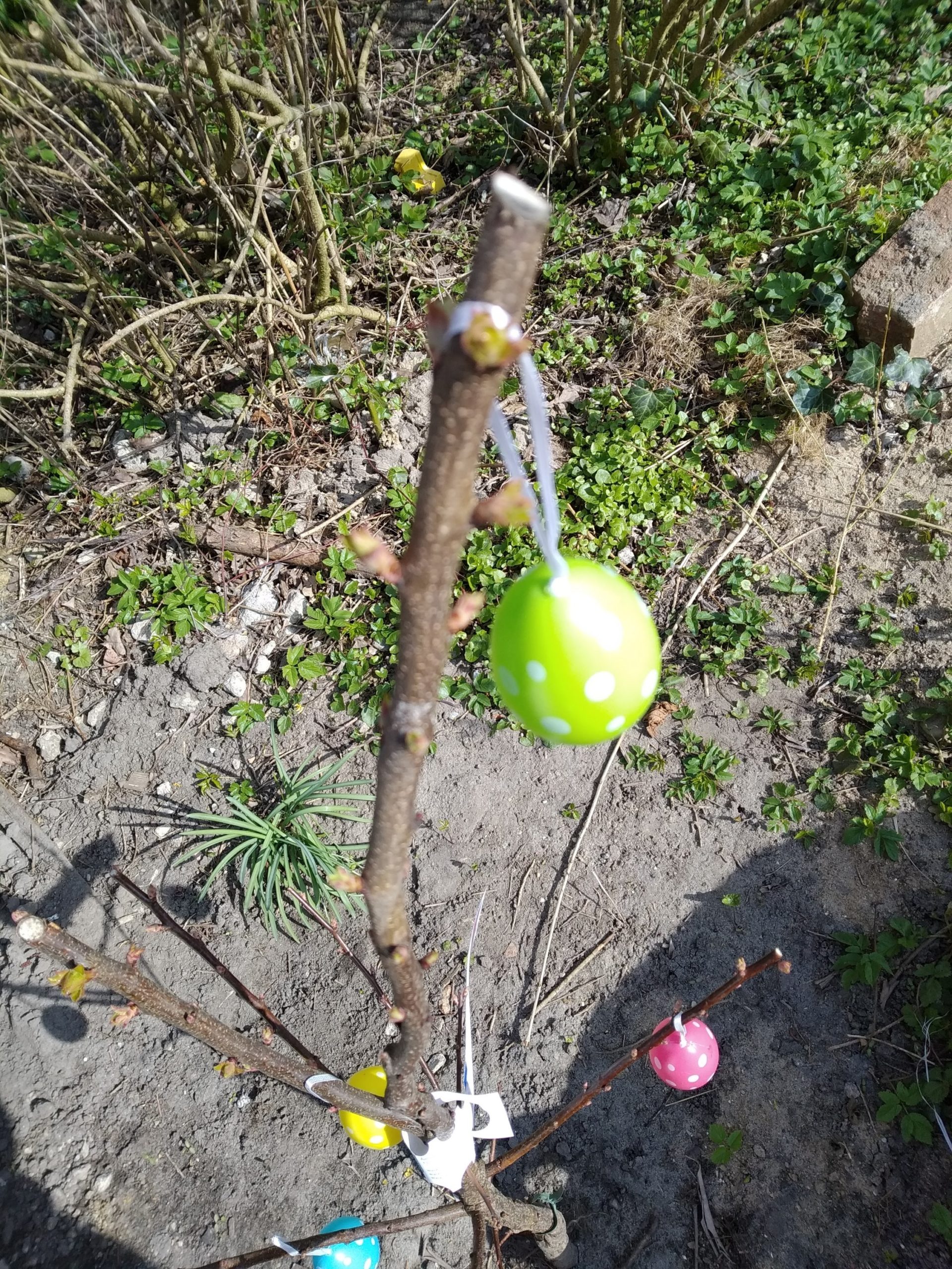 Hier sieht man gut die Länge und Krümmung des Leittriebs ( das grüne Ei hängt extra zur Markierung